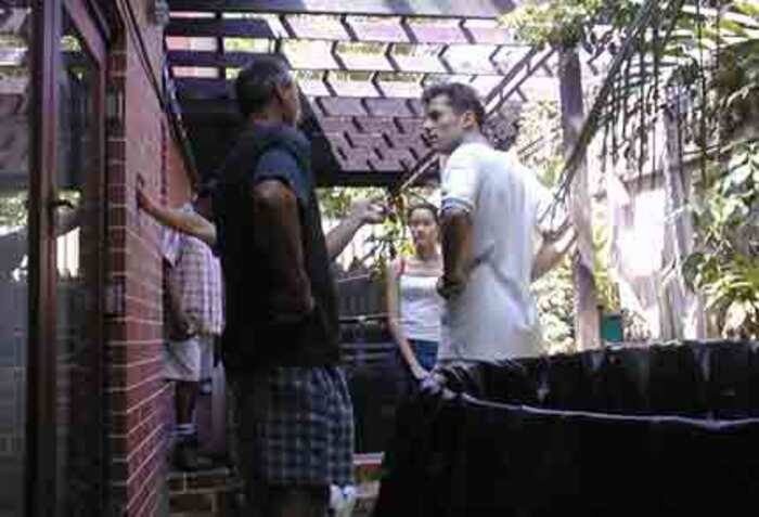 Richard (on the right) discusses his pond with the other members.